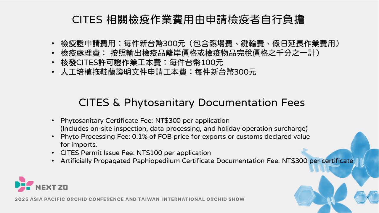 During the exhibition, there will be a CITES booth on-site to assist international visitors with their CITES permit for transporting plants to their home countries. The CITES booth will operate from March 7th to 10th, between 10:00 and 16:00.