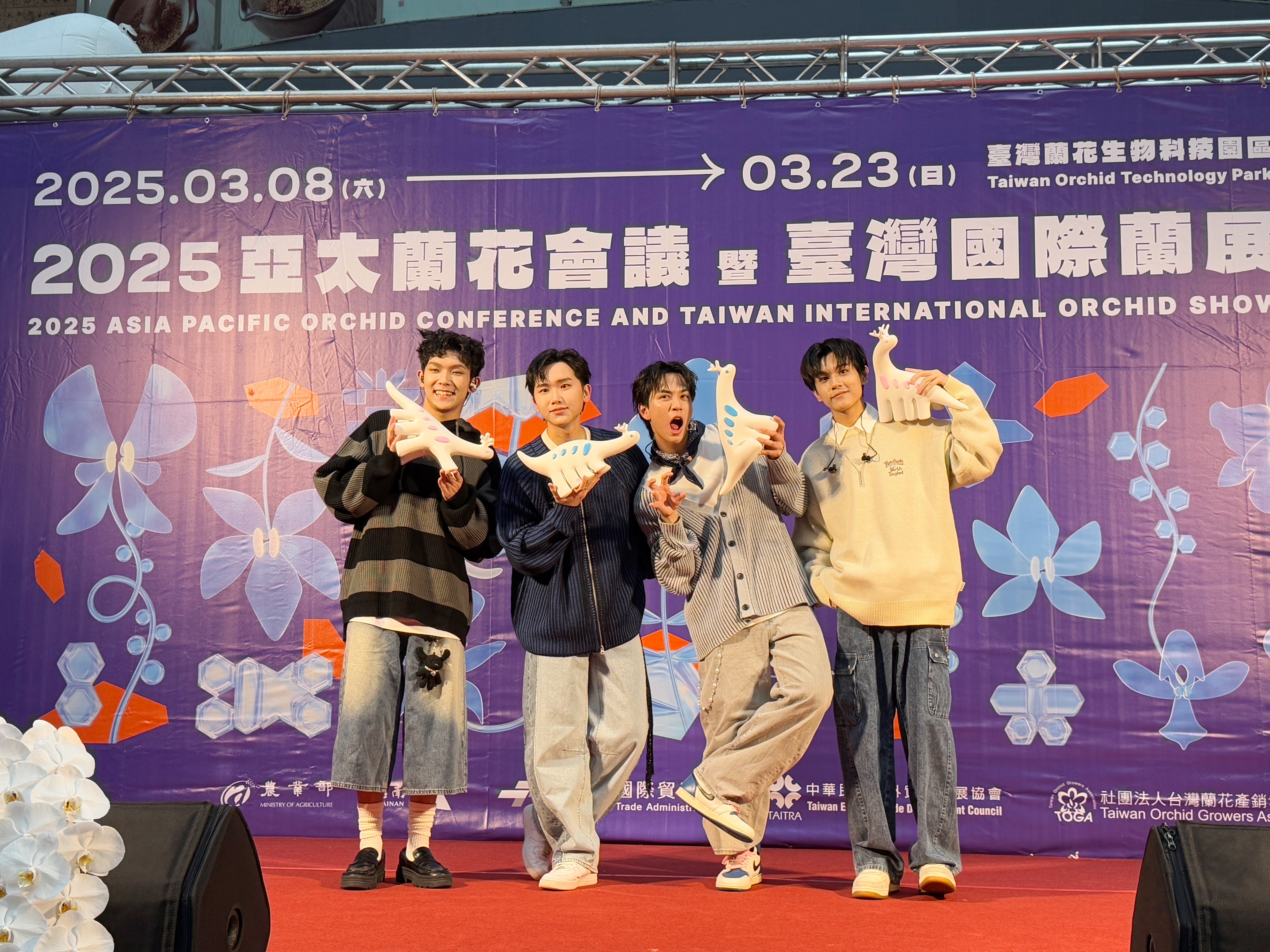2/18於 臺北車站舉辦展前宣傳記者會,臺南市長黃偉哲、農糧署副署長姚志旺及台灣蘭花產銷發展協會理事長黃文榮皆到場力挺,並邀請超人氣男團 #AcQUA源少年 帶來精彩開場演出,為活動熱力應援!